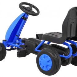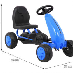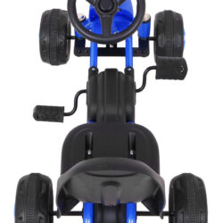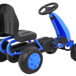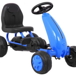 Gokart jest wyposażony w plastikowe koła z gumowymi opaskami, które zapewniają doskonałą przyczepność oraz komfort jazdy. Z przodu znajduje się koło o średnicy Ø13 x 6 cm, a z tyłu koło o średnicy Ø15,5 x 6 cm. Ergonomiczny fotel, o wymiarach 17,5 x 17,5 x 17,5 cm, zapewnia wygodne siedzenie, co sprawia, że jazda jest jeszcze przyjemniejsza.